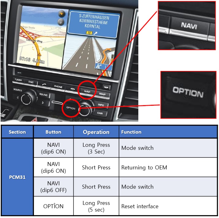 - Control via original PCM31 touch screen