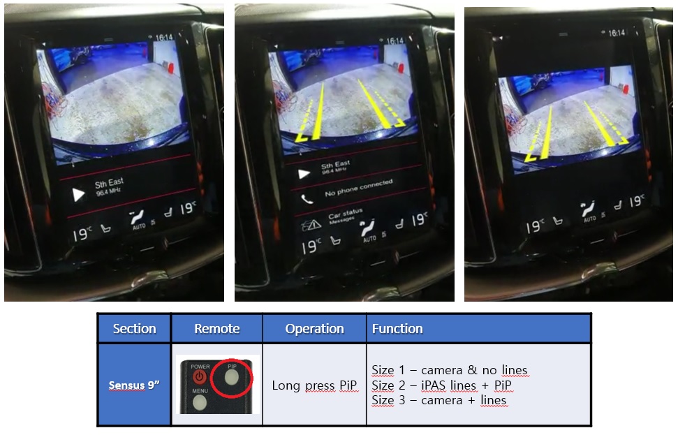 PiP option is available for original parking sensor overlay (Picture in Picture) |