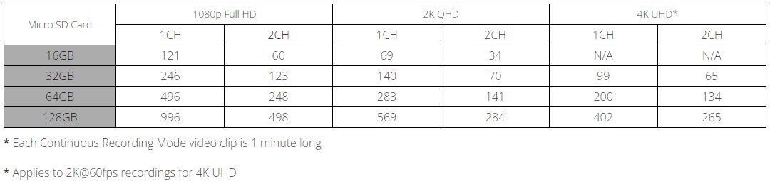 Note: Each Continuous Driving Video clip is 1 minute long. |